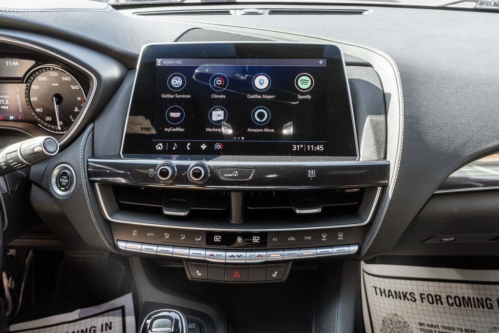 - Cadillac user experience AM/FM stereo with 10" diagonal color information display, 3 USBs, personalized profiles for each driver's settings, Natural Voice Recognition, Phone Integration for Apple CarPlay and Android Auto capability for compatible phone, NFC (Near Field Communications) mobile device pairing, Connected Apps and Teen Driver (Upgradeable to (IOT) Cadillac user experience with embedded navigation when (PCM) Sun and Sound Package is ordered.)