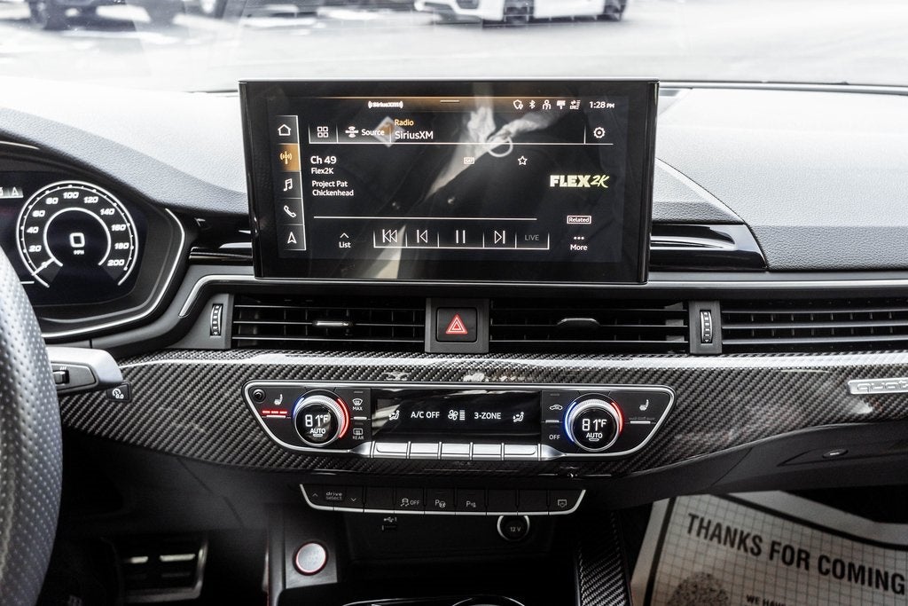- Radio: Audi Sound System -inc: Audi connect CARE (limited time subscription), Audi smartphone interface w/wireless Apple CarPlay, Bang & Olufsen sound system w/3D sound, MMI touch display w/10.1" center screen, preparation for mobile phone (Bluetooth®) w/streaming audio and SiriusXM all access service w/3-month trial subscription