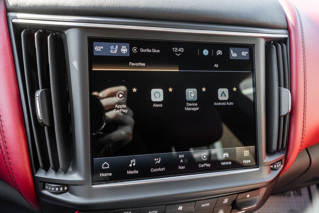 - Radio: AM/FM w/Maserati Intelligent Assistant -inc: 8.4" touchscreen display, navigation, HD radio, SiriusXM satellite radio w/1-year trial subscription, SD card reader, USB, aux-in, Apple CarPlay and Android Auto capable, Bluetooth® functionality, climate controls, OTA updates, Alexa in-vehicle voice assistant, eCall and bCall, remote diagnostics control, navigation services and app store