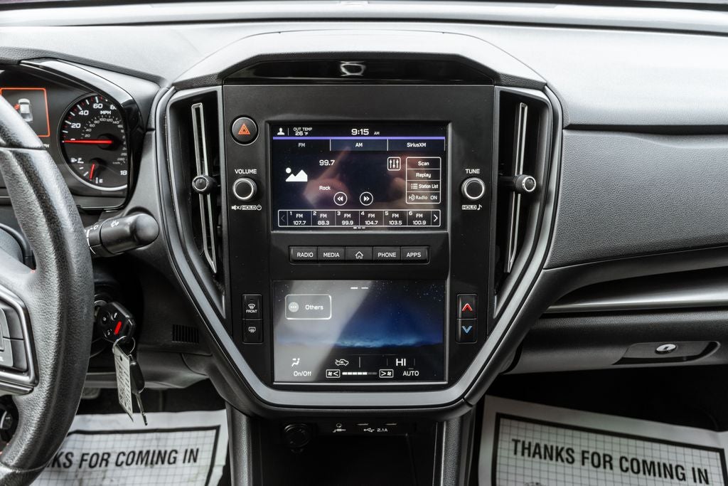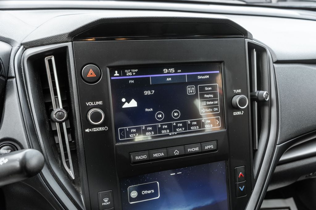 - Radio: Subaru STARLINK Dual 7" Multimedia Plus Sys -inc: AM/FM stereo HD Radio, multi-touch gesture high resolution display screen, voice activated controls, Bluetooth® audio streaming connectivity, Bluetooth® hands-free phone connectivity, Bluetooth® hands-free SMS text messaging connectivity (applicable w/compatible cell phone), Near Field Communication (NFC), iPod control capability, rear-vision camera display, SiriusXM All Access radio (4 months free trial/subscription required after), SiriusXM Travel Link (4 months free trial/subscription required after), smartphone integration: Android Auto, CarPlay, STARLINK cloud applications, 6 speakers and roof mounted audio and satellite antenna