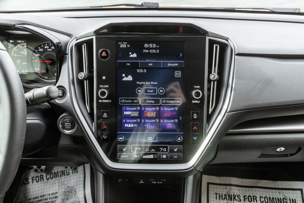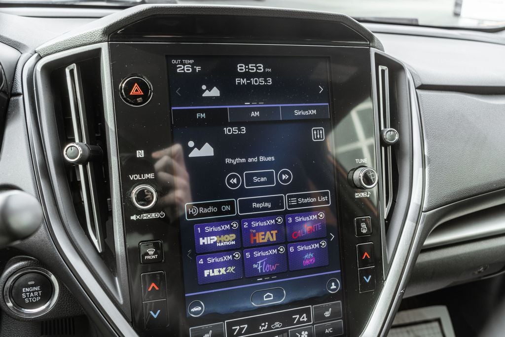 - Radio: Subaru STARLINK 11.6" Multimedia Plus Sys -inc: AM/FM stereo HD Radio, multi-touch gesture high resolution display screen, voice activated controls, Bluetooth® audio streaming connectivity, Bluetooth® hands-free phone connectivity, Bluetooth® hands-free SMS text messaging connectivity (applicable w/compatible cell phone), Near Field Communication (NFC), iPod control capability, rear-vision camera display, SiriusXM All Access radio (4 months free trial/subscription required after), SiriusXM Travel Link (4 months free trial/subscription required after), smartphone integration: Android Auto, CarPlay, STARLINK cloud applications, 6 speakers and roof mounted audio and satellite antenna