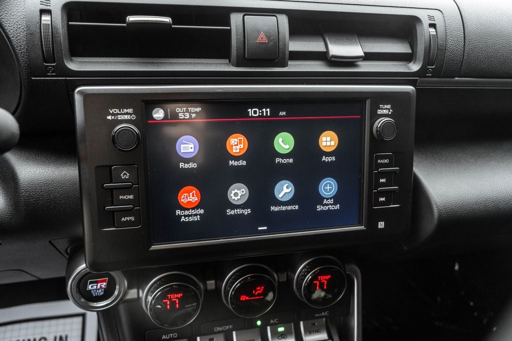 - Radio: GR86 Audio -inc: 8" touch-screen display, Apple CarPlay and Android Auto compatibility, SiriusXM 3-month platinum plan trial subscription, 6 speakers, Safety Connect w/1 year trial subscription, Service Connect w/1 year trial subscription and Remote Connect w/1 year trial subscription